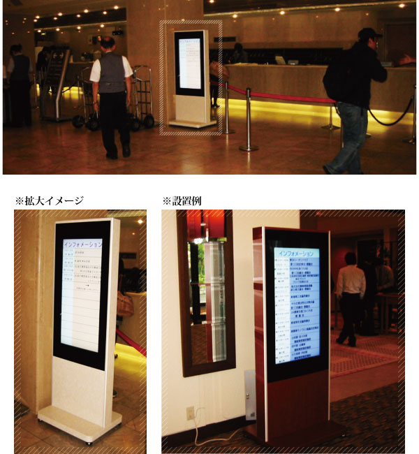 予算の関係とLANにすると工事の問題も発生する為、USBでコンテンツを作成して後ろの装置にUSBメモリを指して表示するシンプルな使い方です。