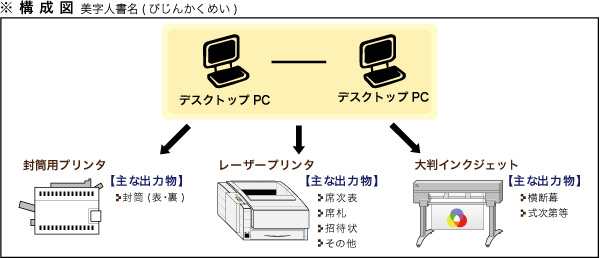 以前は印刷物に関してはすべて印刷会社に外注していました。「美字人書名」のソフトを機に現在パートスタッフ3名で ローテーションで動いております。